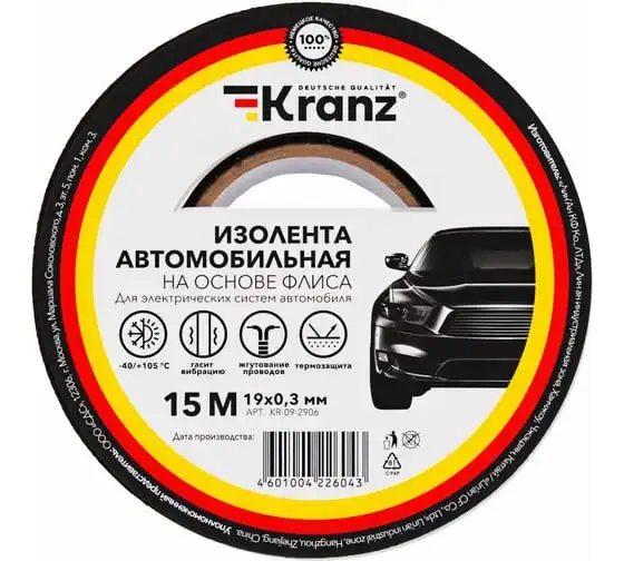 Автомобильная изолента KRANZ флис, 0.3x19 мм, 15 м KR-09-2906