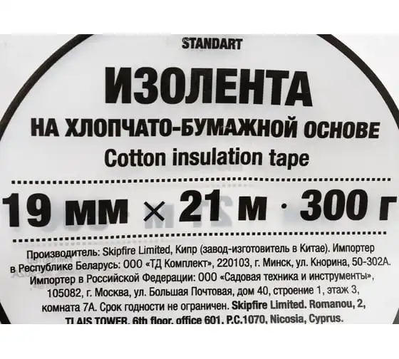 Хлопчатобумажная изолента STARTUL 19 мм 21 м Standart ST9050-300