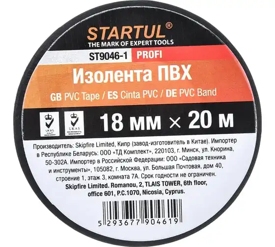 Изолента ПВХ STARTUL 18 мм 20 м черная Profi ST9046-1