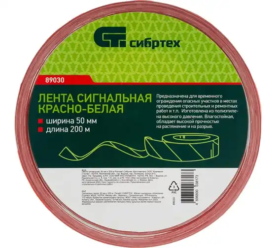 Сигнальная лента СИБРТЕХ 50 мм х 200 м 89030