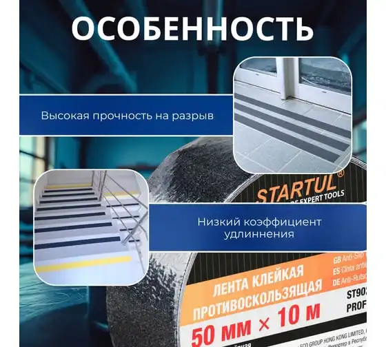 Противоскользящая клейкая лента STARTUL PROFI 50 мм, 10 м, черная ST9022-50-10
