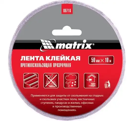 Клейкая противоскользящая лента MATRIX, прозрачная, 50мм х 10м, 88716