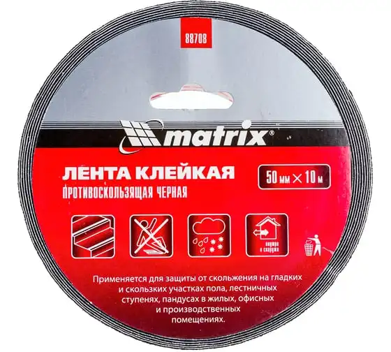 Клейкая противоскользящая лента MATRIX черная, 50 мм х 10м, 88708