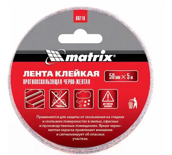 Клейкая противоскользящая лента MATRIX черно-желтая, 50 мм х 5м, 88718