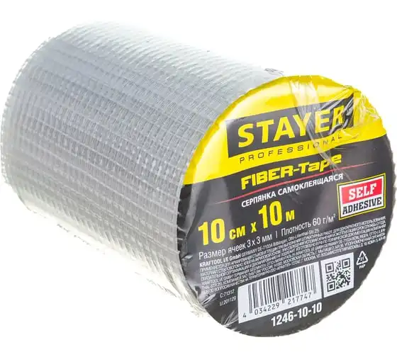 Самоклеящаяся серпянка STAYER FIBER-Tape, 10 см х 10м, Professional 1246-10-10