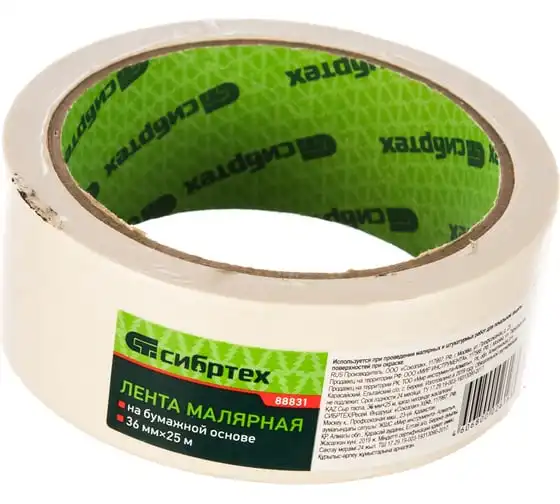 Малярная лента СИБРТЕХ 36 мм х 25 м, на бумажной основе 88831