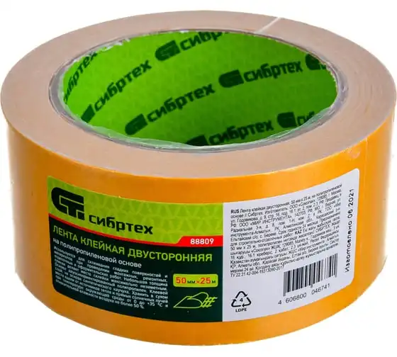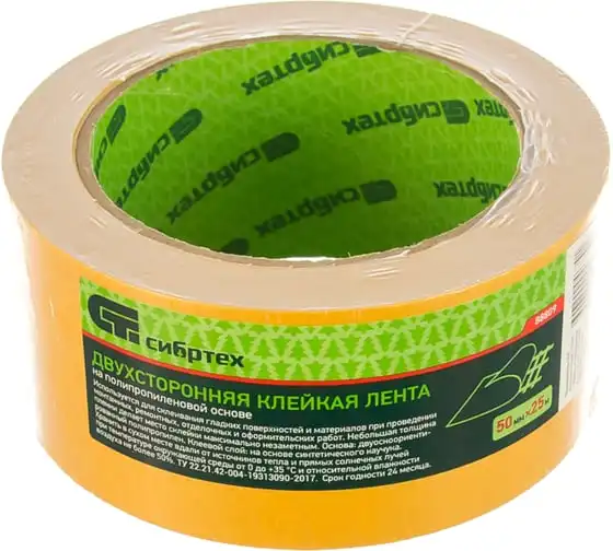 Двусторонняя клейкая лента СИБРТЕХ 50x25, на полипропиленовой основе 88809
