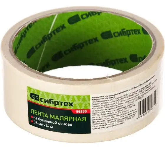 Малярная лента СИБРТЕХ 36 мм х 14 м, на бумажной основе 88835