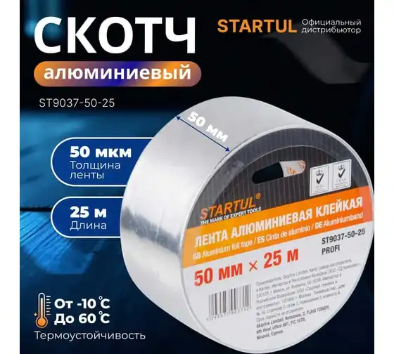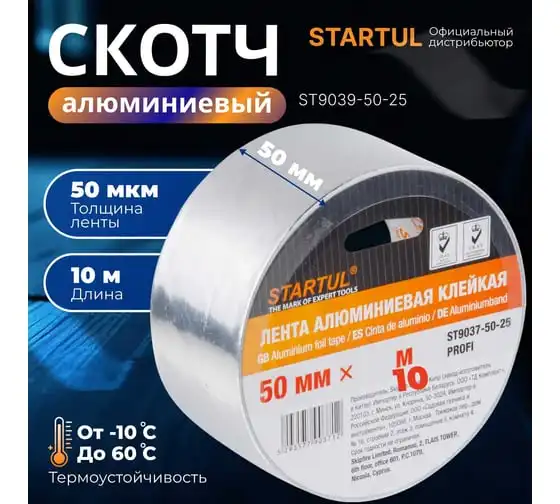 Алюминиевая клейкая лента STARTUL 50 мм 25 м Profi ST9037-50-25