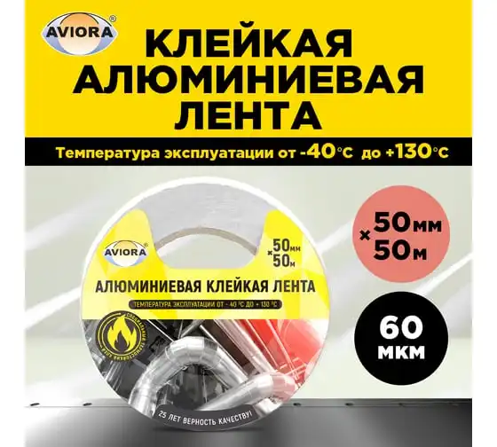 Алюминиевая клейкая лента AVIORA DSAF 30 мкм, 50 мм х 10 м 302-196