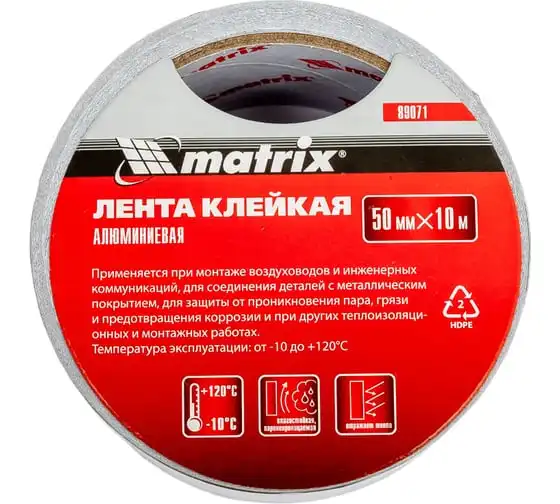 Клейкая алюминиевая лента MATRIX, 50 мм х 10 м 89071