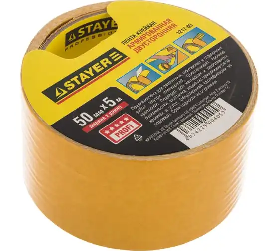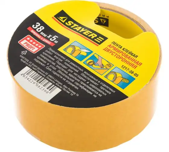 Лента STAYER PROFI двусторонняя, клейкая, армированная тканью, 38ммх5м 1217-38-05