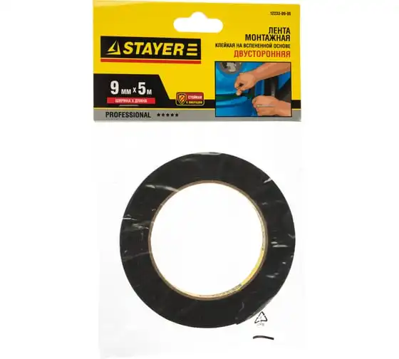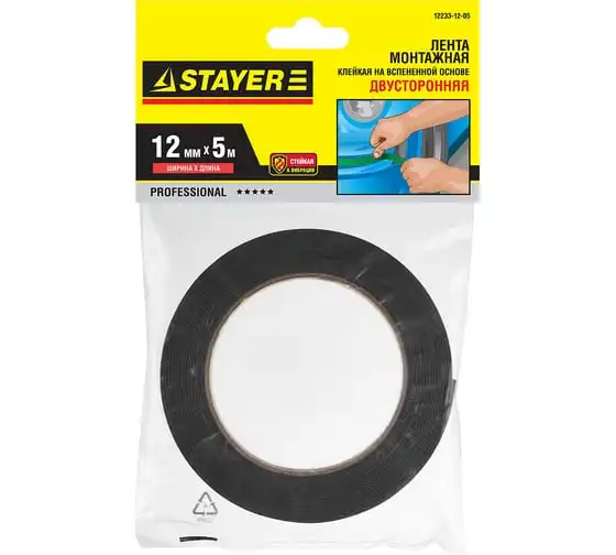 Клейкая монтажная лента STAYER "Profi" на вспененной основе черная 12 мм х 5 м 12233-12-05