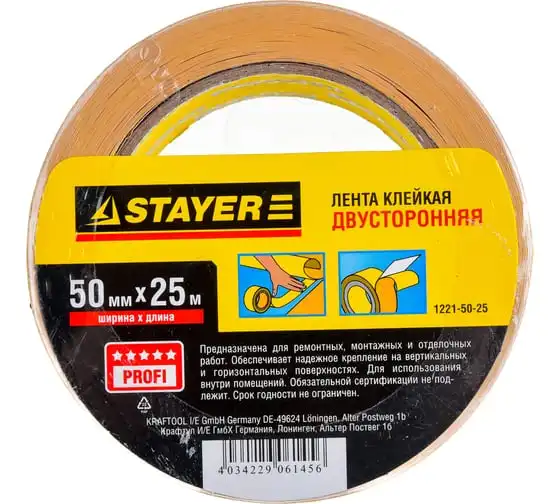 Двусторонняя клейкая лента STAYER "PROFI" 38ммх25м 1221-38-25