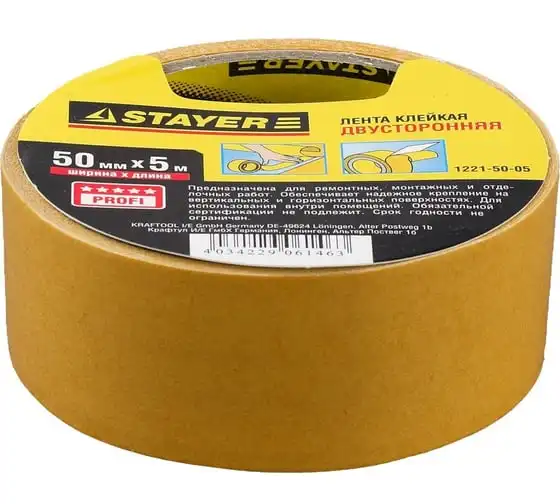 Лента клеящая двухсторонняя "PROFI" (50 мм; 5 м) Stayer 1221-50-05