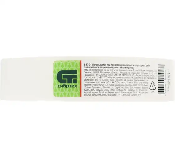 Малярная лента СИБРТЕХ, 25 мм х 40 м, на бумажной основе 88701