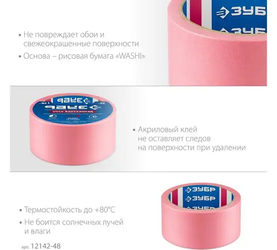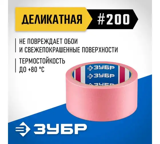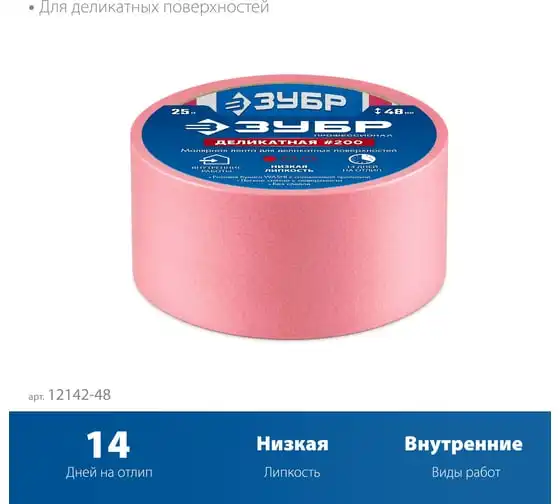 Малярная лента ЗУБР Профессионал №200 48 мм х 25 м, для деликатных и недавно окрашенных поверхностей 12142-48