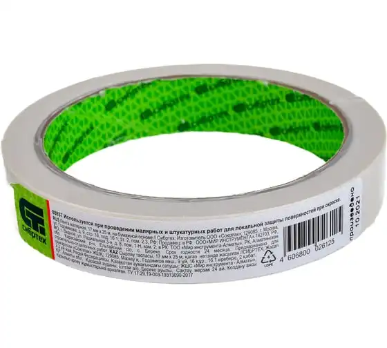 Малярная лента СИБРТЕХ 17 мм х 25 м, на бумажной основе 88837