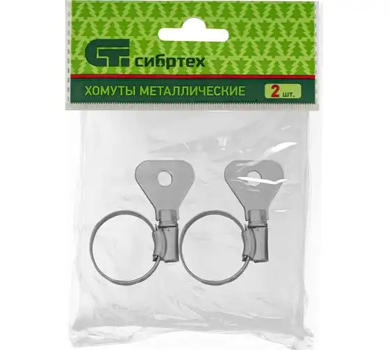 Металлические хомуты СИБРТЕХ, элемент крепления с формой ключа, 20-32мм, 2 шт 47651