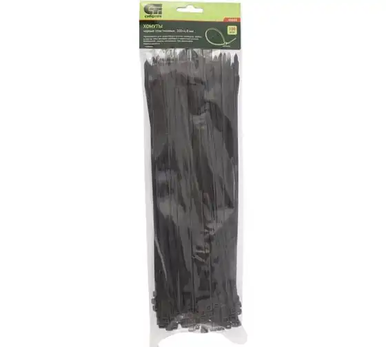 Пластиковые хомуты СИБРТЕХ, 300 х 8 мм, черные, 100 шт 45573