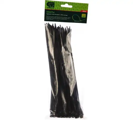 Пластиковые хомуты СИБРТЕХ, 250 * 4,8 мм, черные, 100 шт 45564