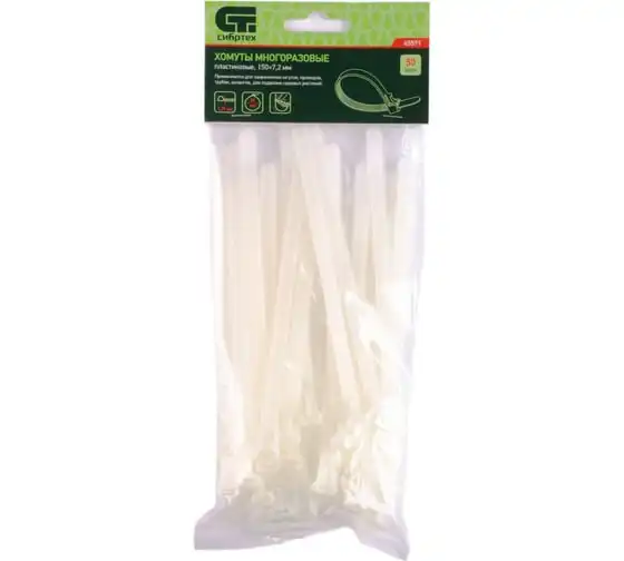 Многоразовые пластиковые хомуты СИБРТЕХ 150х7,2 мм, 50 шт 45571