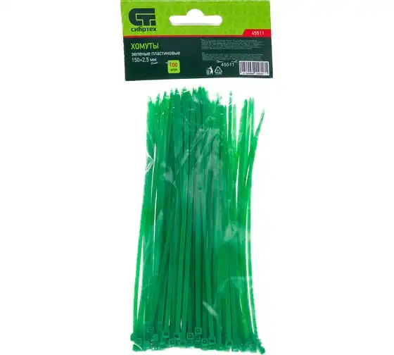 Пластиковые хомуты СИБРТЕХ, 150 * 2,5 мм, зеленые, 100 шт 45511