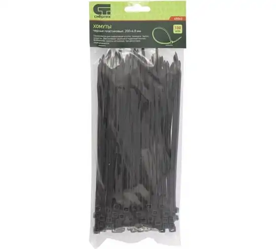 Пластиковые хомуты СИБРТЕХ, 200 * 4,8 мм, черные, 100 шт 45563