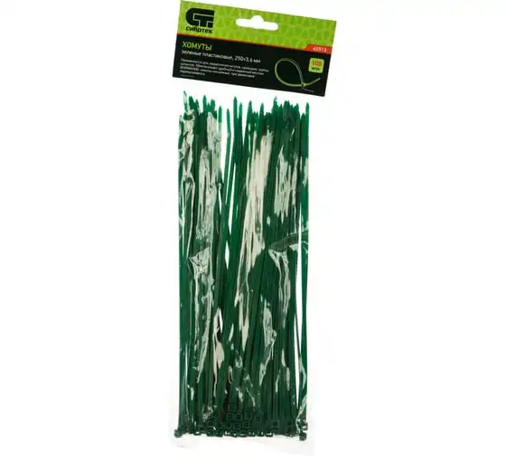 Пластиковые хомуты СИБРТЕХ 250 * 3,6 мм, зеленые, 100 шт 45513