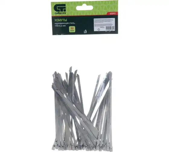 Хомуты СИБРТЕХ, 150 х 4,6 мм, нержавеющая сталь, 50 шт 45593