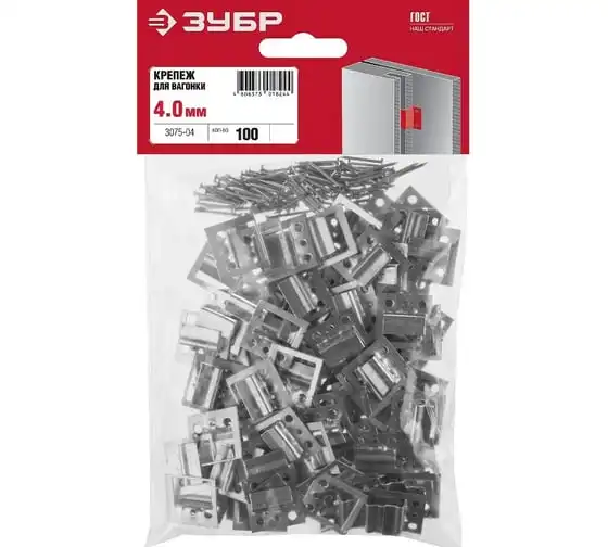 Крепеж для вагонки ЗУБР Кляймер цинк 4 мм 100 шт. 3075-04