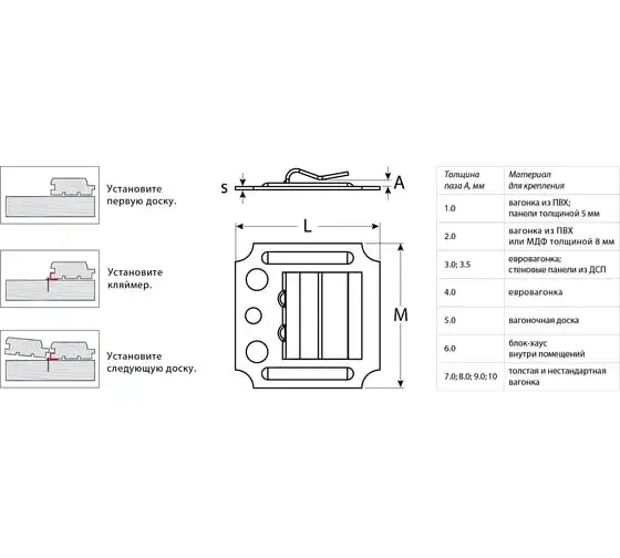 Крепеж для вагонки ЗУБР Кляймер 1 мм, 100 шт. 3075-01