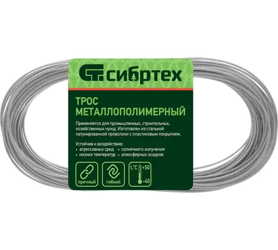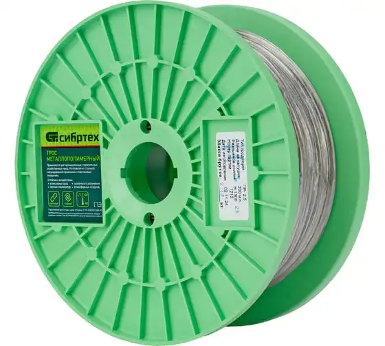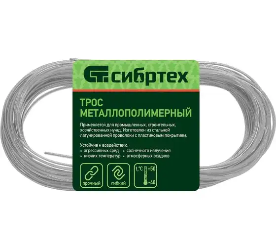 Металлополимерный трос СИБРТЕХ прозрачный ПР-2,5 47627