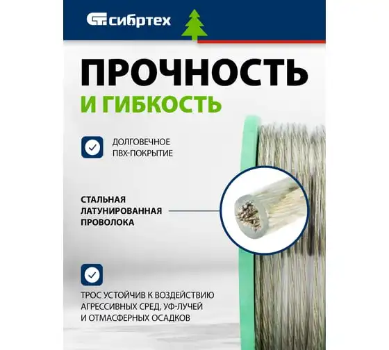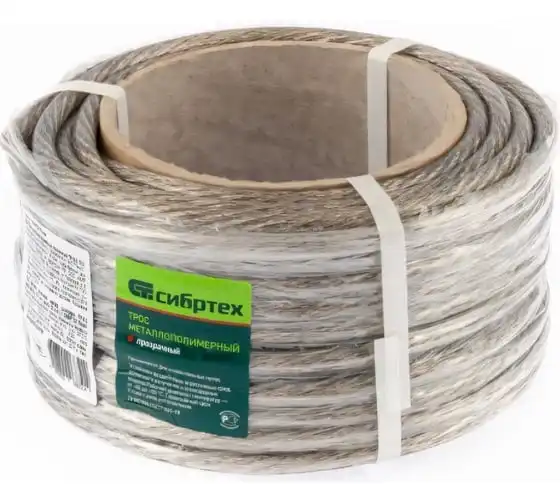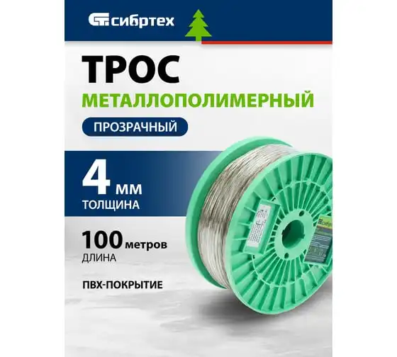 Металлополимерный трос СИБРТЕХ прозрачный ПР-4, 100 м 47630
