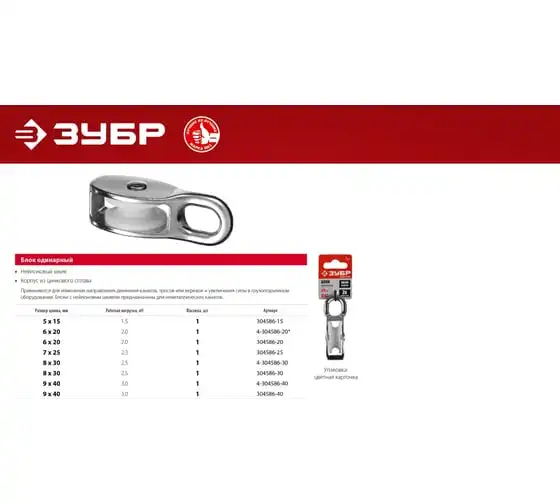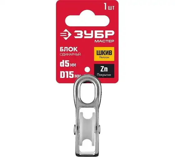 Одинарный блок ЗУБР 5x15 мм, 1 шт, нейлоновый шкив 304586-15