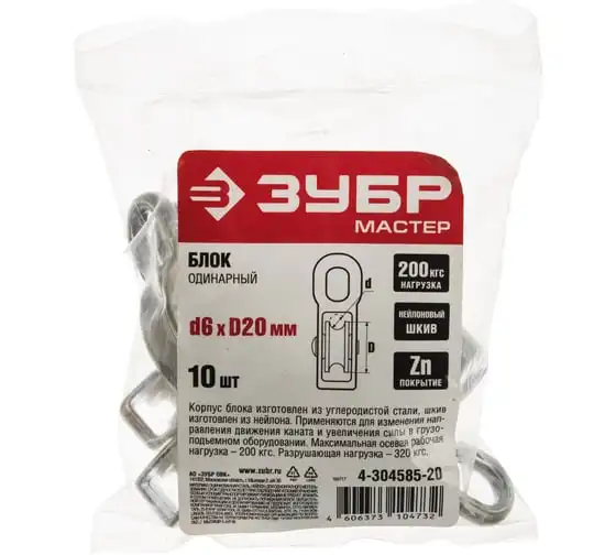Блок одинарный с пластиковым роликом (10 шт; 6х20 мм; ТФ5) Зубр 4-304585-20