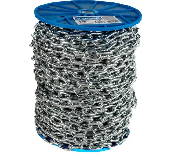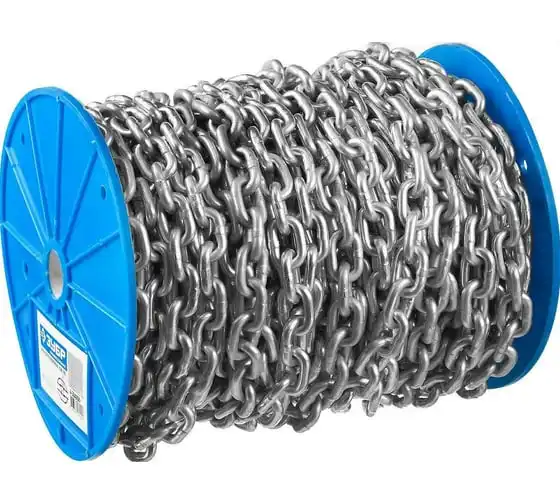 Короткозвенная цепь Зубр DIN 766 оцинкованная сталь, d=5мм, L=45м 4-304050-05