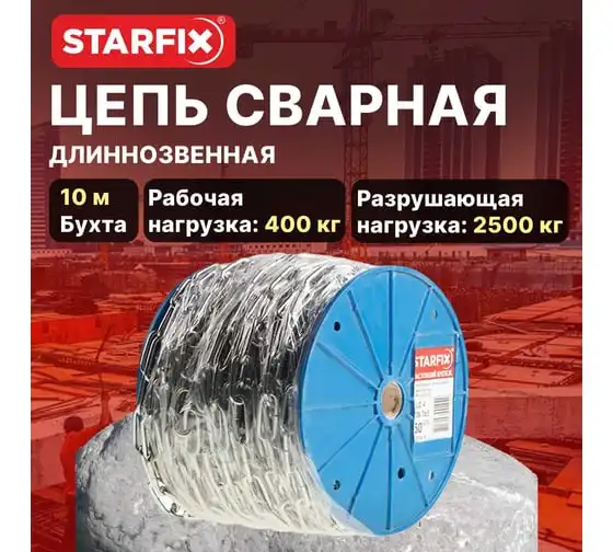 Сварная цепь STARFIX длиннозвенная оцинкованная LLC М8 DIN 763 бухта 10 м SMP-63689-10