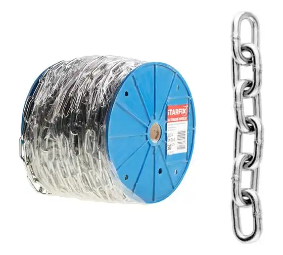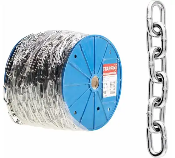 Сварная цепь STARFIX короткозвенная оцинкованная SLC M4 DIN 766 бухта 50 м SMP-63684-50
