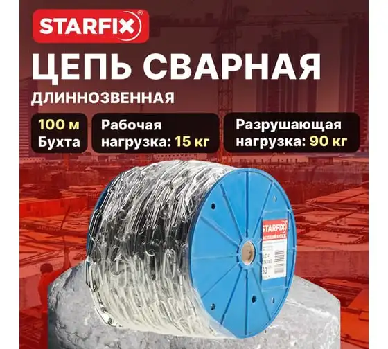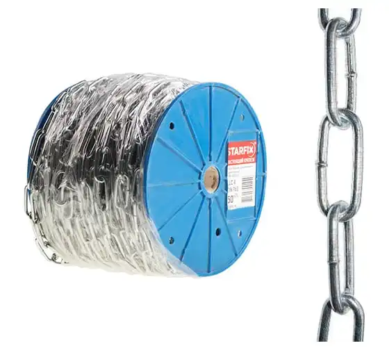 Сварная цепь STARFIX длиннозвенная оцинкованная LLC М4 DIN 763 бухта 50 м SMP-42316-50