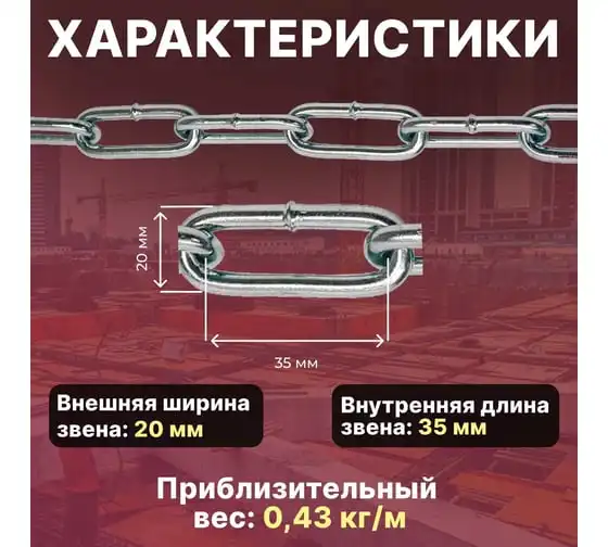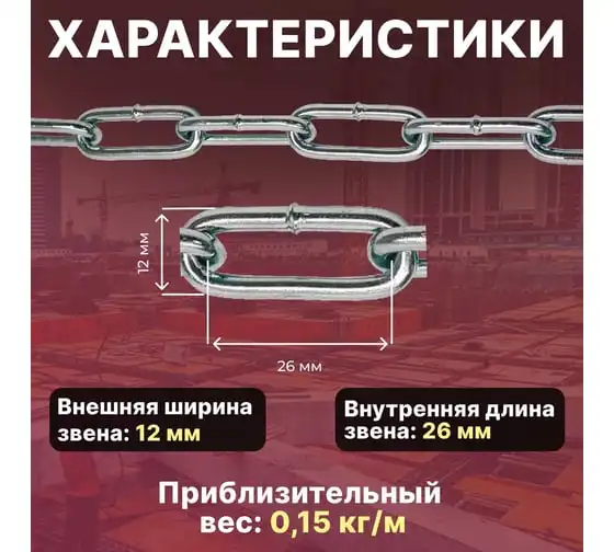 Сварная цепь STARFIX длиннозвенная оцинкованная LLC М6 DIN 763 бухта 20 м SMP-42318-20
