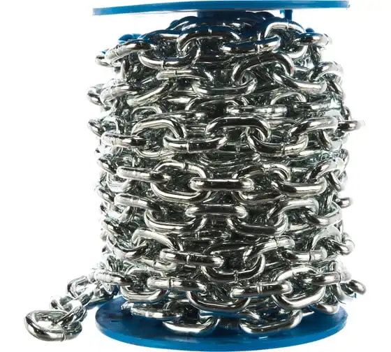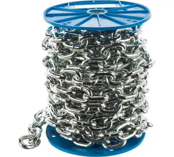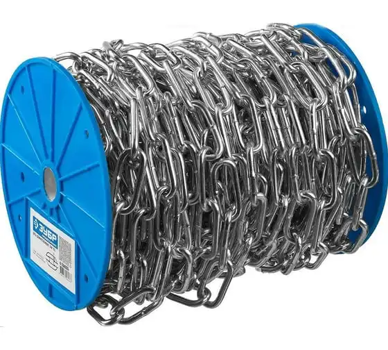 Короткозвенная цепь Зубр DIN 766 оцинкованная сталь, d=6мм, L=30м 4-304050-06