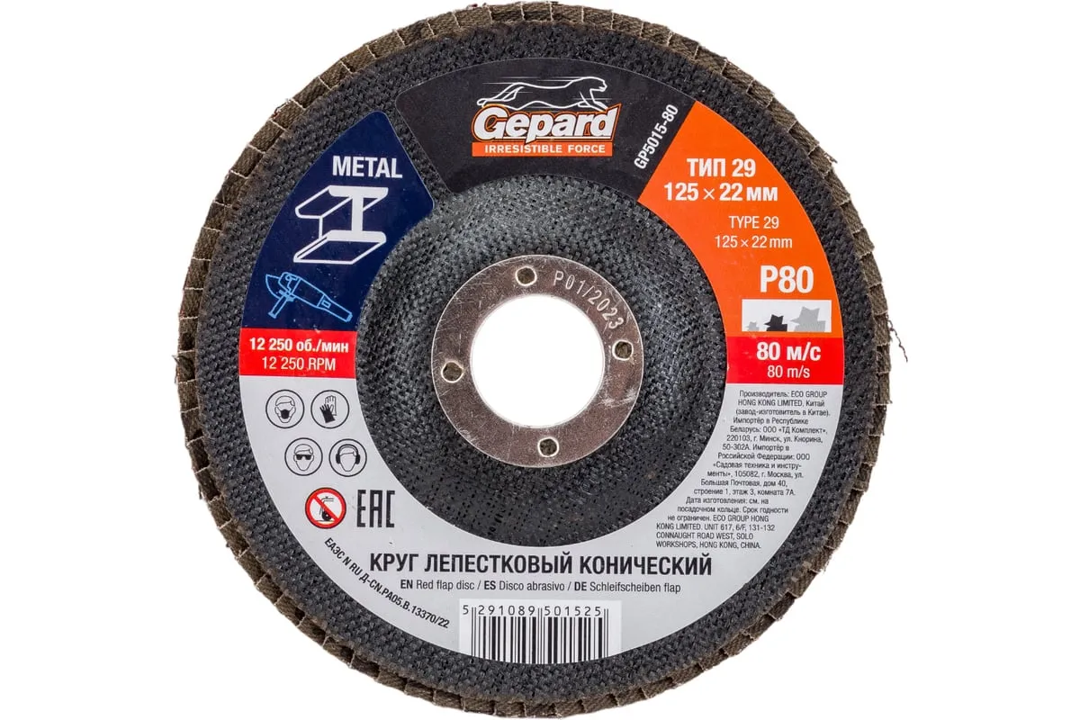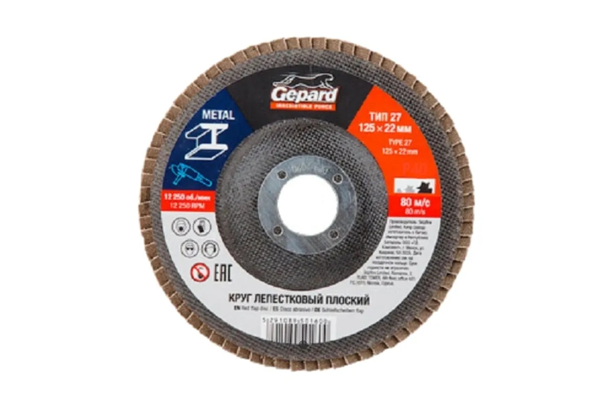 Круг лепестковый конический 125х22 мм, P80 Gepard GP5015-80 служит для работы совместно с УШМ соответствующего типоразмера. Предназначен для шлифовальных работ по металлу, инструментальной стали, чугуну, дереву и пластику. Состоит из корунда (оксид алюминия), тканевой основы, обода из инструментальной стали. Угол наклона 10 градусов. Рекомендован для обработки криволинейных и изогнутых поверхностей. Внимание, изображение товара может отличаться от реального! Верные параметры указаны в технических характеристиках товара.