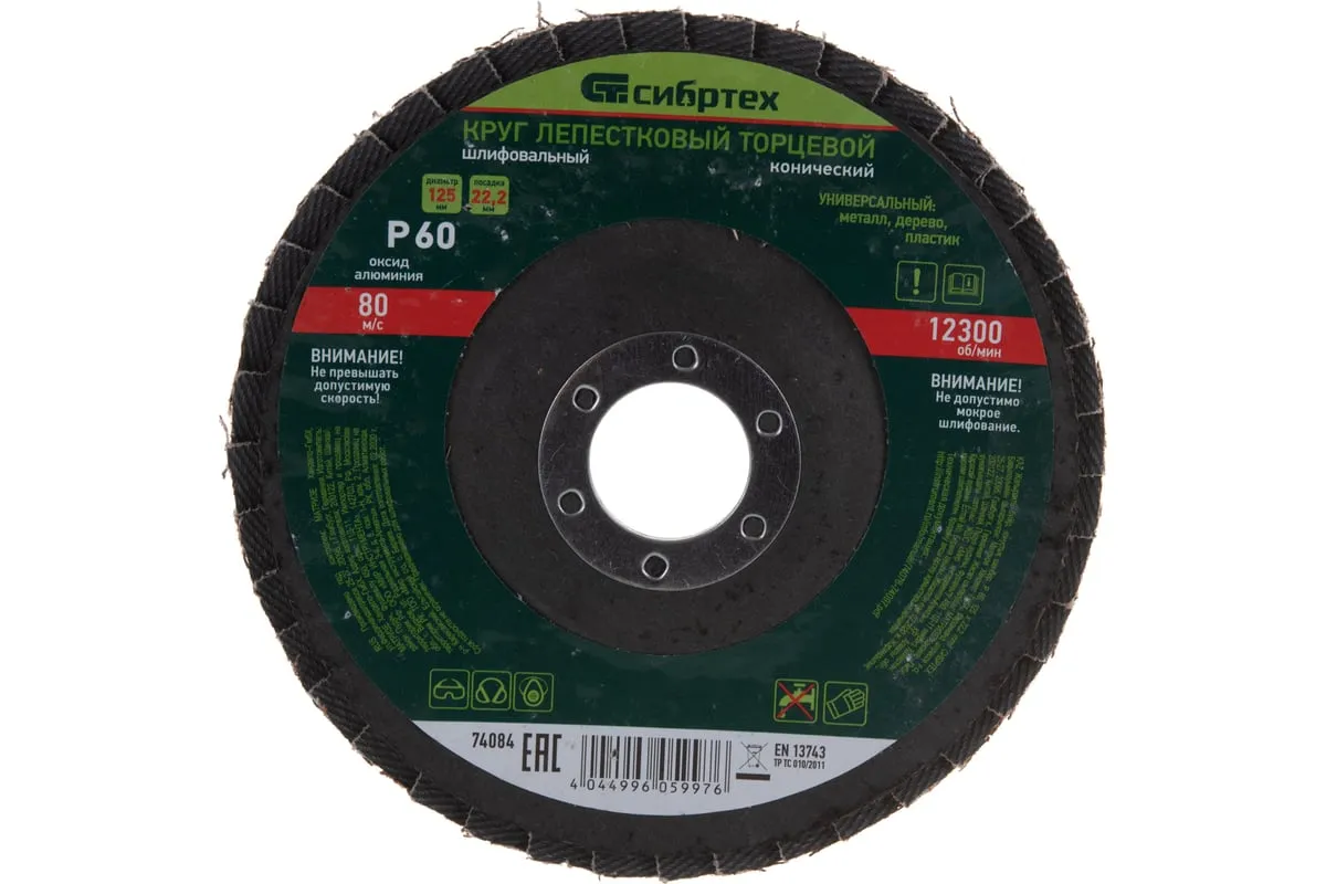 Круг лепестковый торцевой, конический (125x22.2 мм; P60) СИБРТЕХ 74084