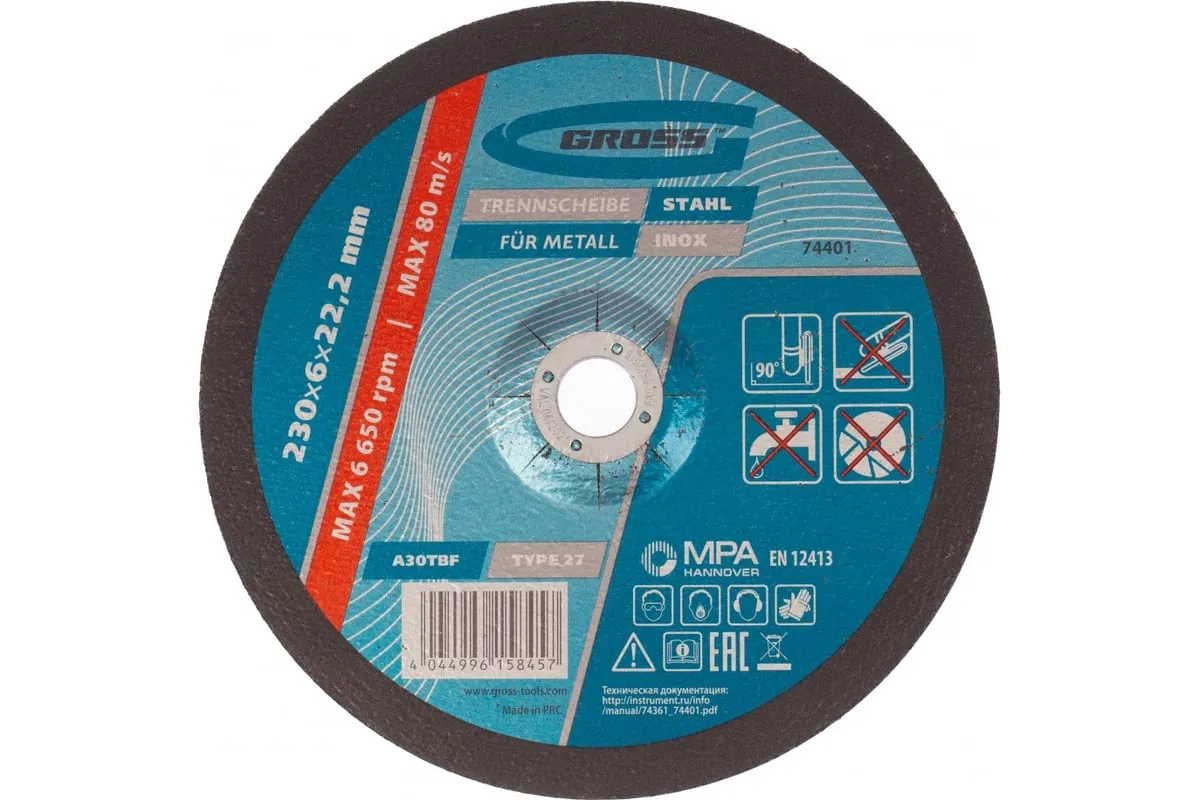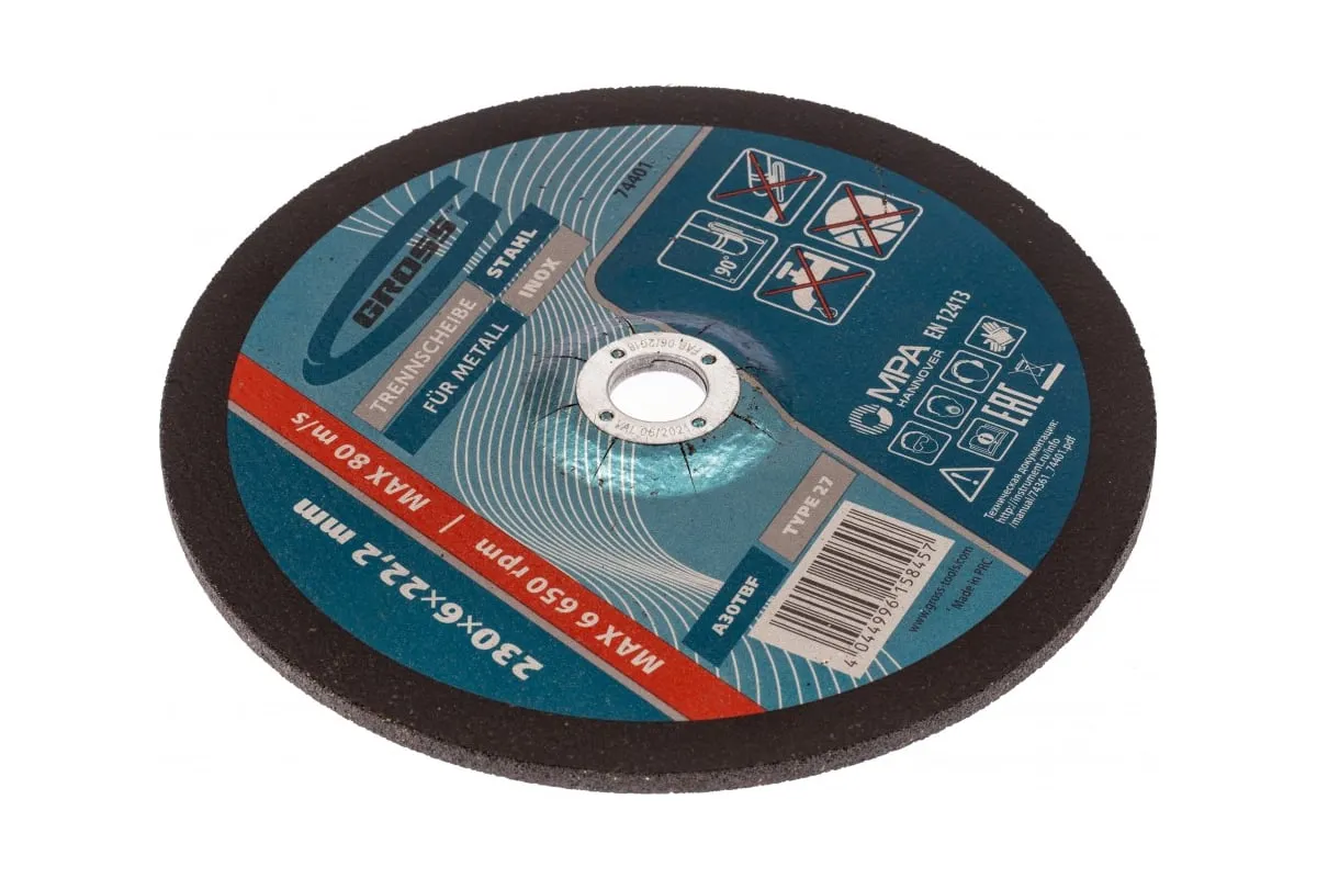 Круг шлифовальный по металлу 230х6х22,2 мм GROSS 74401 применяется шлифовки и зачистки черных металлов и заготовок из нержавеющей стали. Диск может использоваться в профессиональной сфере.