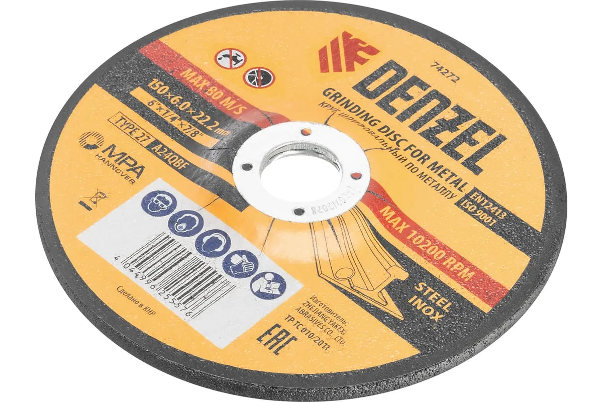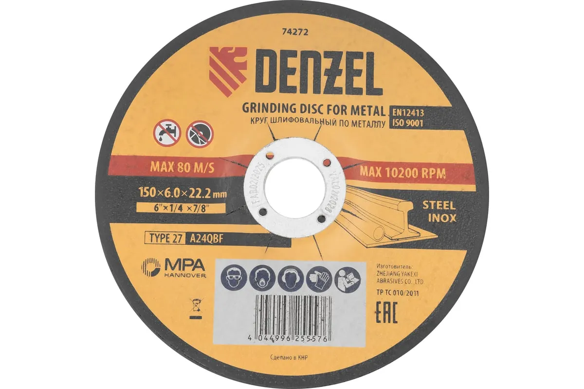 Шлифовальный круг Denzel устанавливается на фланец углошлифовальной машины. Круг предназначен для ручной обработки углеродистых и легированных сталей без использования смазочно-охлаждающих жидкостей. Позволяет шлифовать поверхности, зачищать сварные швы, удалять заусенцы и прочие дефекты. Пригодится в слесарной мастерской.