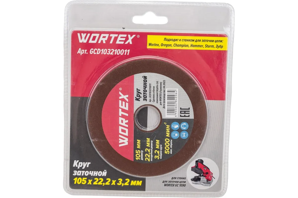 Круг заточной 105x3.2x22.2 мм WORTEX GCD103210011 подходит для следующих станков для заточки цепей: