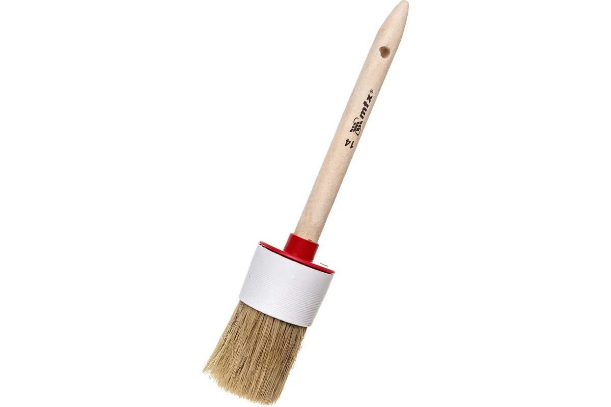 Круглая кисть MTX №14 (50 мм) 82084 с натуральной щетиной и деревянной ручкой пригодится в быту для окрашивания узких длинных поверхностей. Светлая натуральная свиная щетина с добавлением искусственной обладает высокой износоустойчивостью и может использоваться для нанесения красок с содержанием растворителей, а также масляных красок и лаков.