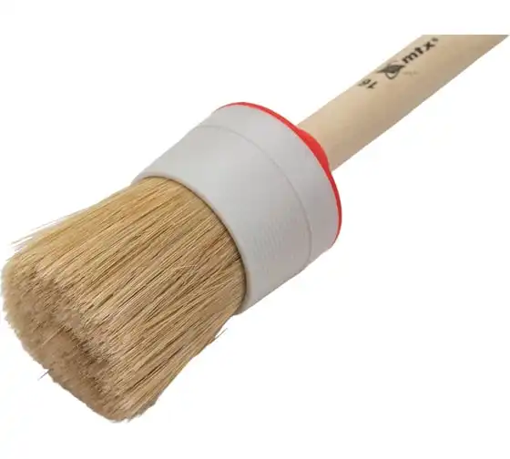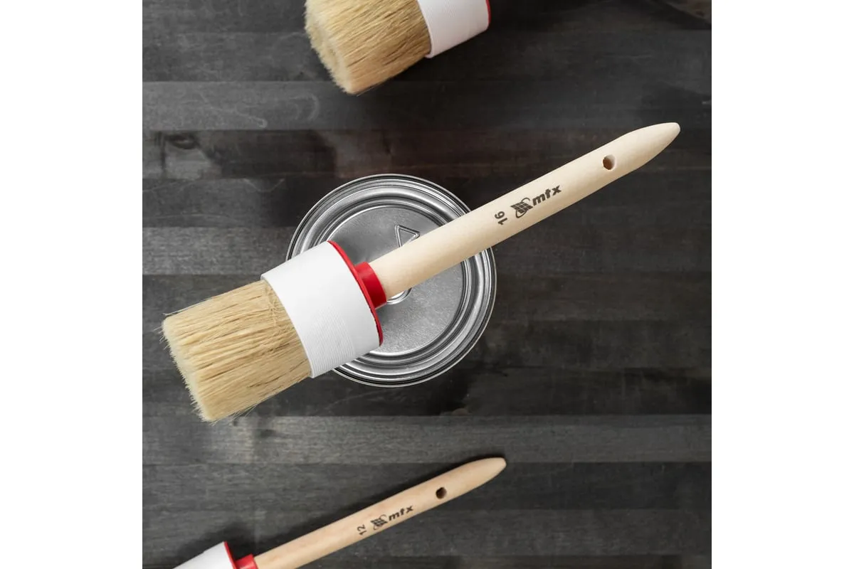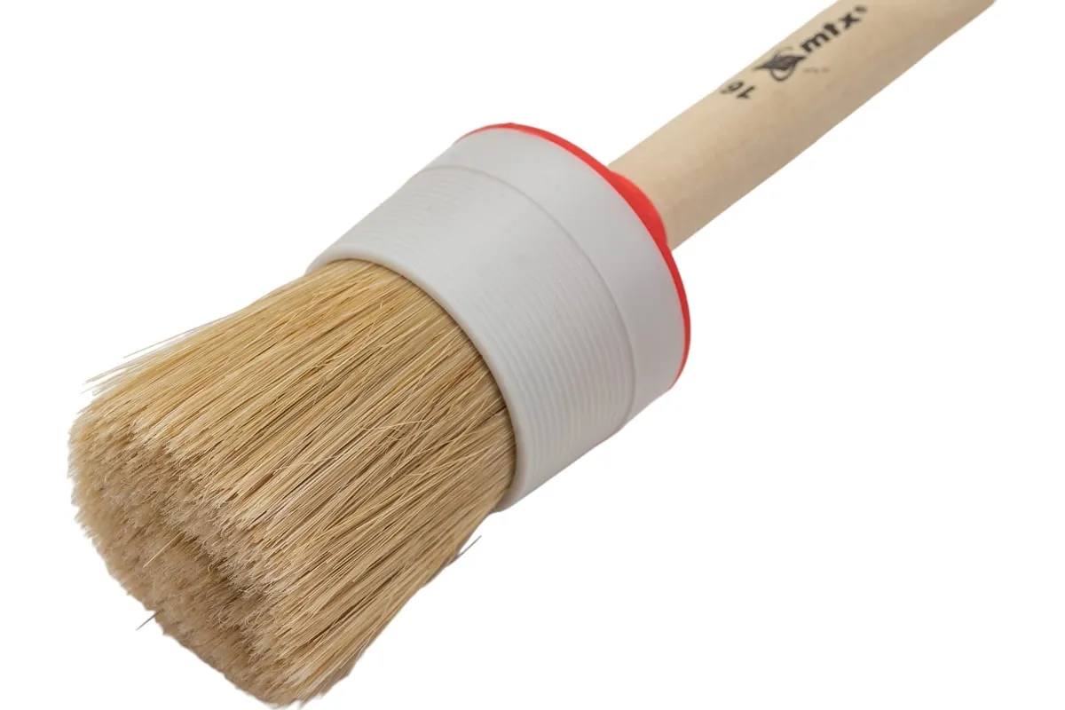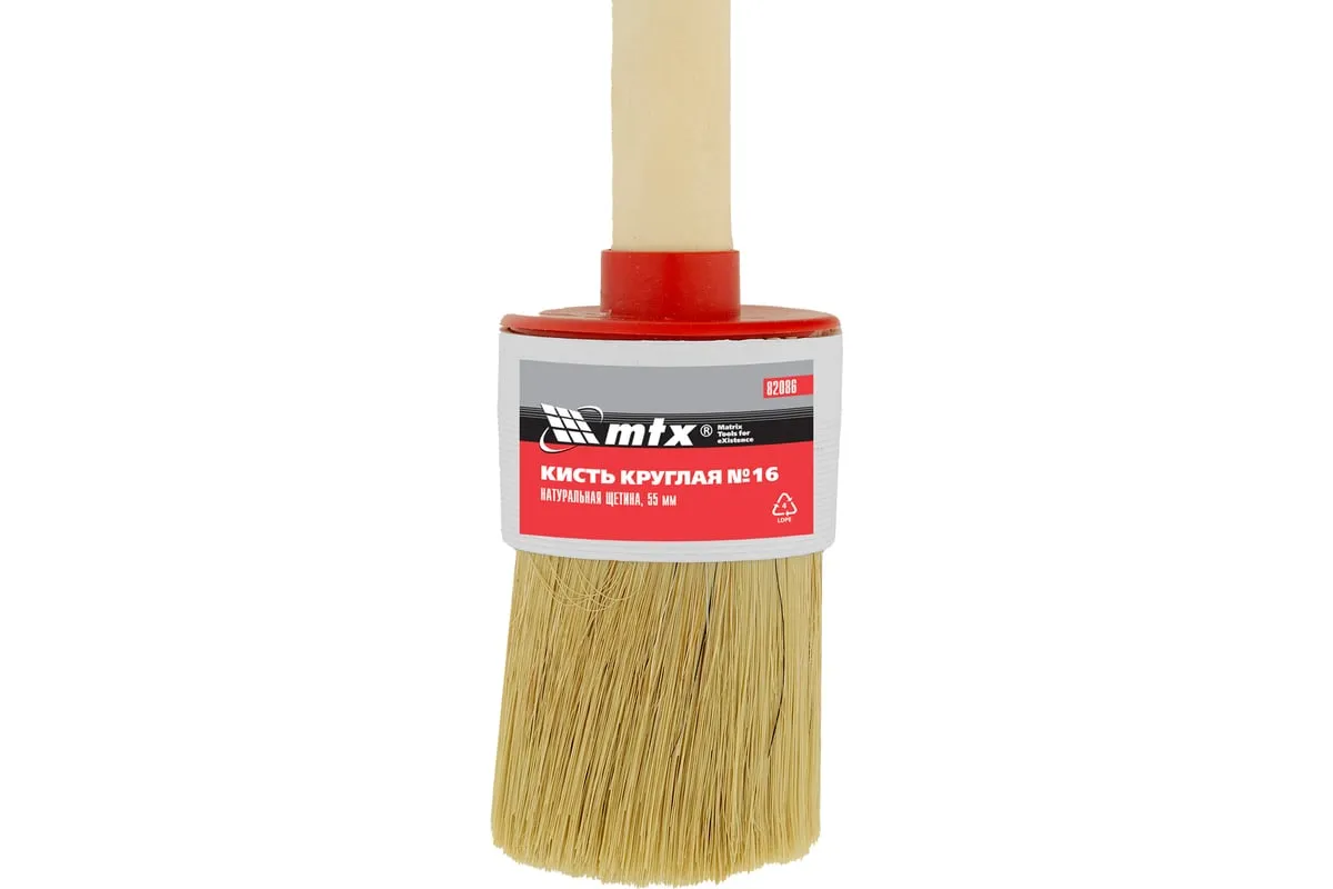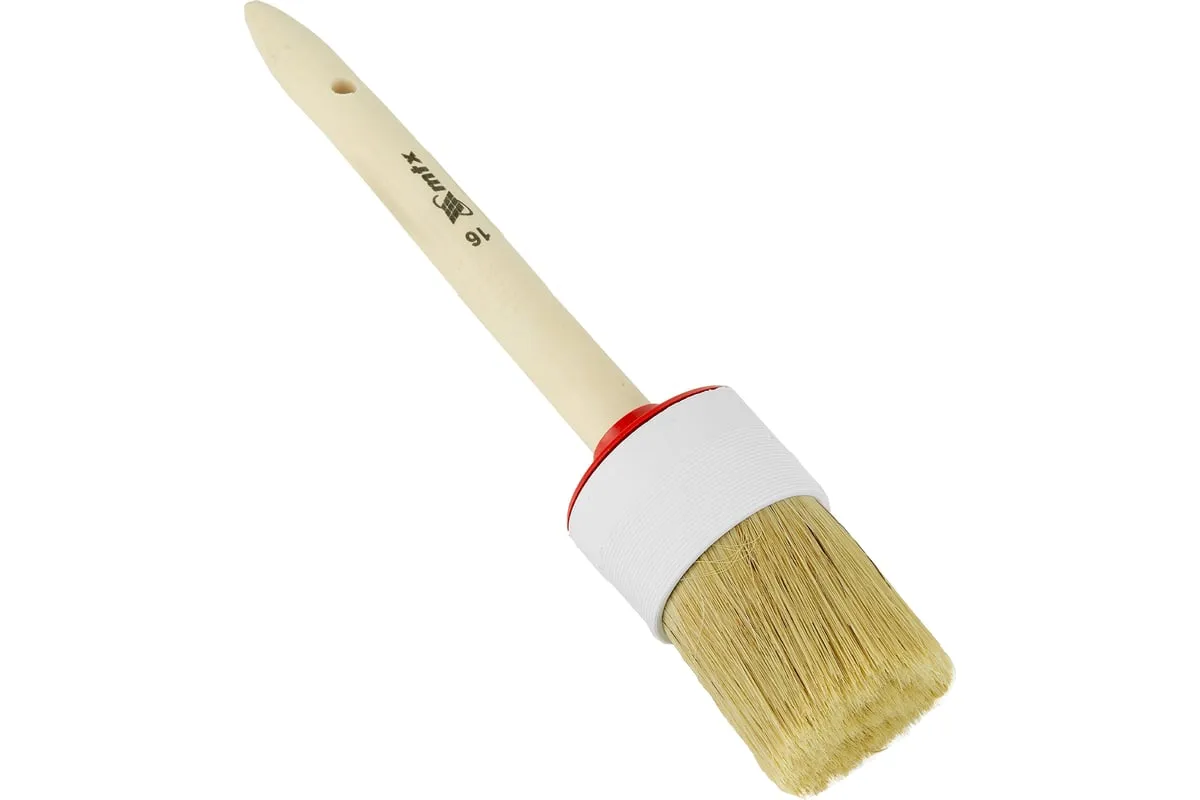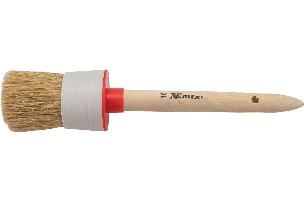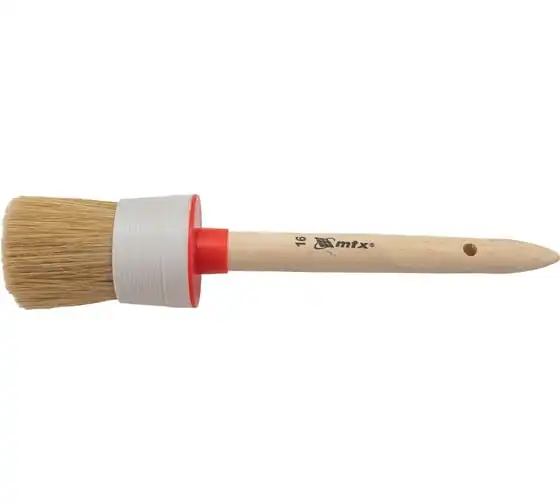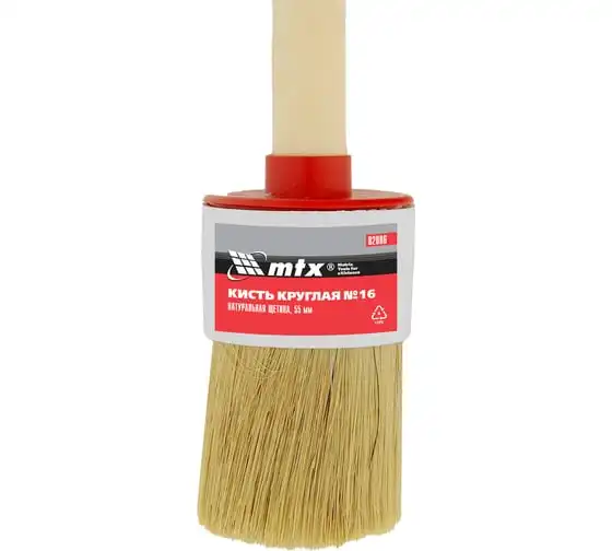 Круглая кисть MTX №16 82086 диаметром 55 мм, с натуральной щетиной и деревянной ручкой, пригодится в быту для окрашивания узких длинных поверхностей. Светлая натуральная свиная щетина с добавлением искусственной обладает высокой износоустойчивостью и может использоваться для нанесения красок с содержанием растворителей, а также масляных красок и лаков.