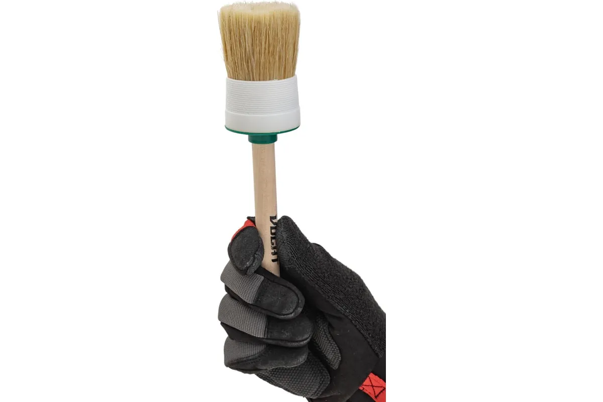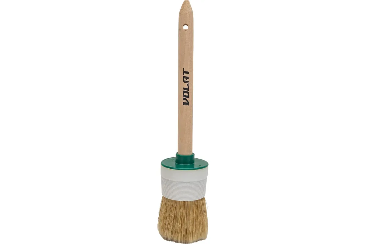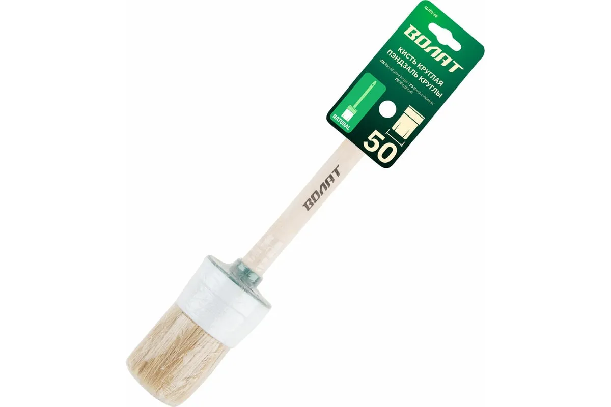 Круглая кисть ВОЛАТ №14 50 мм 10702-50 используется для окрашивания окон, плинтусов, наличников, дверей, ровных и профильных основ, подклейки обоев. Натуральная светлая щетина двойной выварки устойчива к сильным растворителям, обладает отличной краскоотдачей и равномерно распределяет краску по окрашиваемой поверхности.